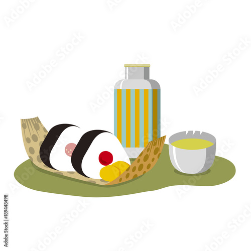 フリー素材 おむすびと水筒のお花見弁当のイラスト