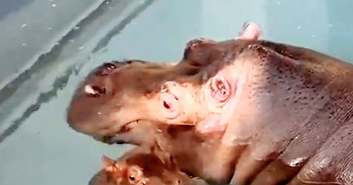 親カバの隣でプカプカ泳ぐ子カバ しかし足元を見た飼育員は驚きでひっ